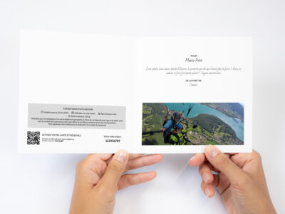 Utilisable pour la réalisation d'un vol en biplace en parapente, le choix du vol dépendra de l'age et du poids, ainsi que du souhait de la personne à qui vous offrez ce vol. Nous contacter pour plus d'informations.